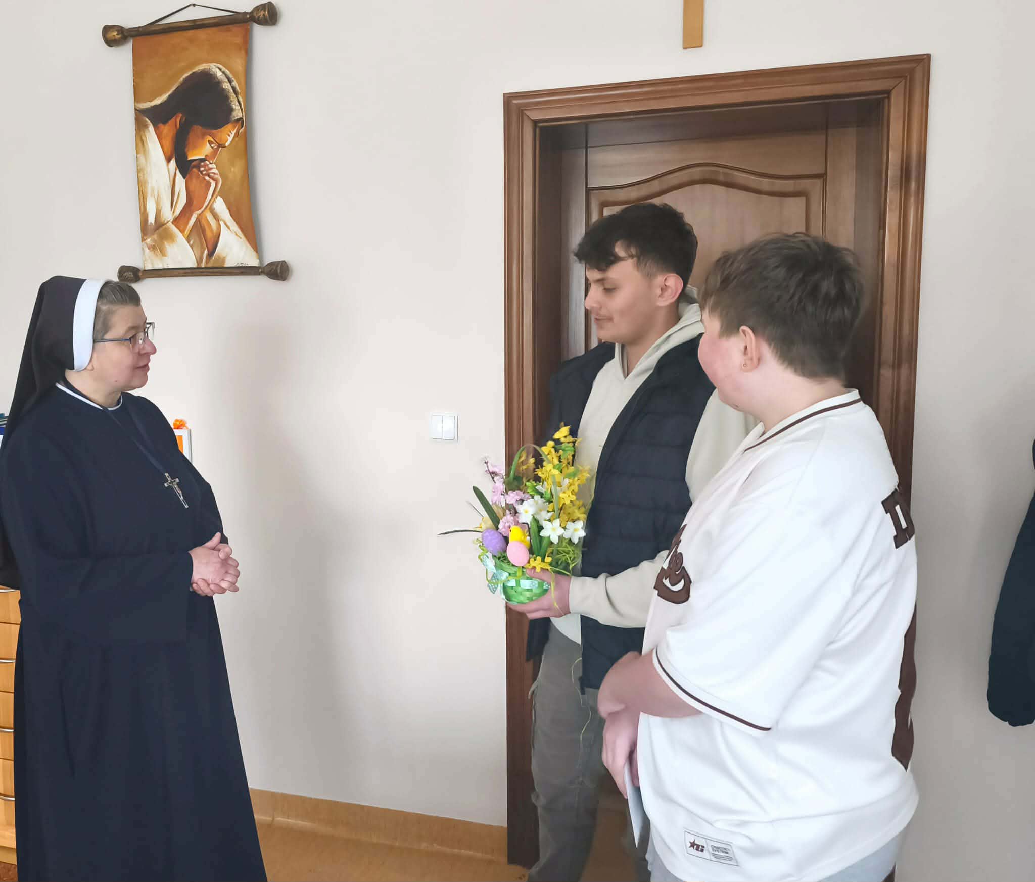Uczniowie z wolontariatu Zespołu Szkół Budowlanych w Brzozowie z okazji Świąt Wielkanocnych złożyli serdeczne życzenia przedstawicielom lokalnych instytucji oraz osobom potrzebującym wsparcia. Odwiedzili Starostwo Powiatowe oraz Gminę Brzozów, gdzie przekazali życzenia staroście i sekretarzowi gminy. Następnie udali się do Domu Pomocy Społecznej w Starej Wsi, gdzie na ręce siostry dyrektor oraz pensjonariuszy przekazali świąteczne pozdrowienia. Życzenia trafiły również do dyrekcji i podopiecznych Dziennego Domu Pomocy w Brzozowie. Spotkania przebiegły w serdecznej, świątecznej atmosferze, przynosząc wiele radości zarówno odwiedzanym, jak i młodzieży.